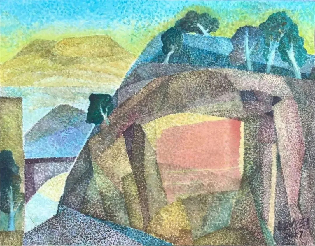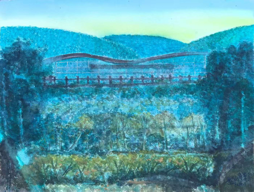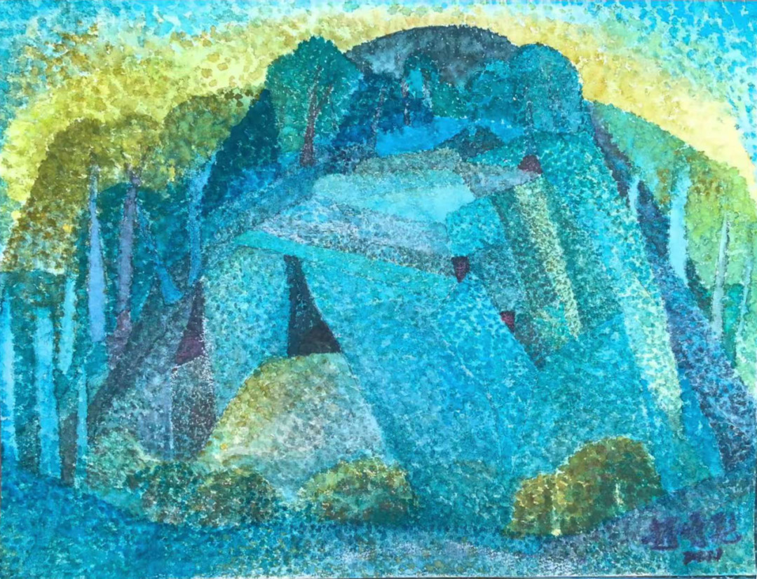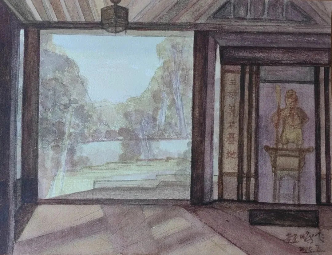 他注重对画面水与色的掌控。创作中,他不刻意追求轮廓的极致清晰,而是借助水分的晕染,让色彩自然交融、渐变,形成柔和的过渡效果。淡彩铺陈时,画面如薄雾般轻盈,尽显空灵意境;重彩点染处,又不失色彩的饱和与张力,却无厚重压抑之感。水色的偶然晕散与刻意把控相互平衡,既保留了水彩的 “偶然性” 魅力,又通过精准的笔触引导,让画面始终围绕主题展开,避免了水色失控的杂乱,尽显创作功底。