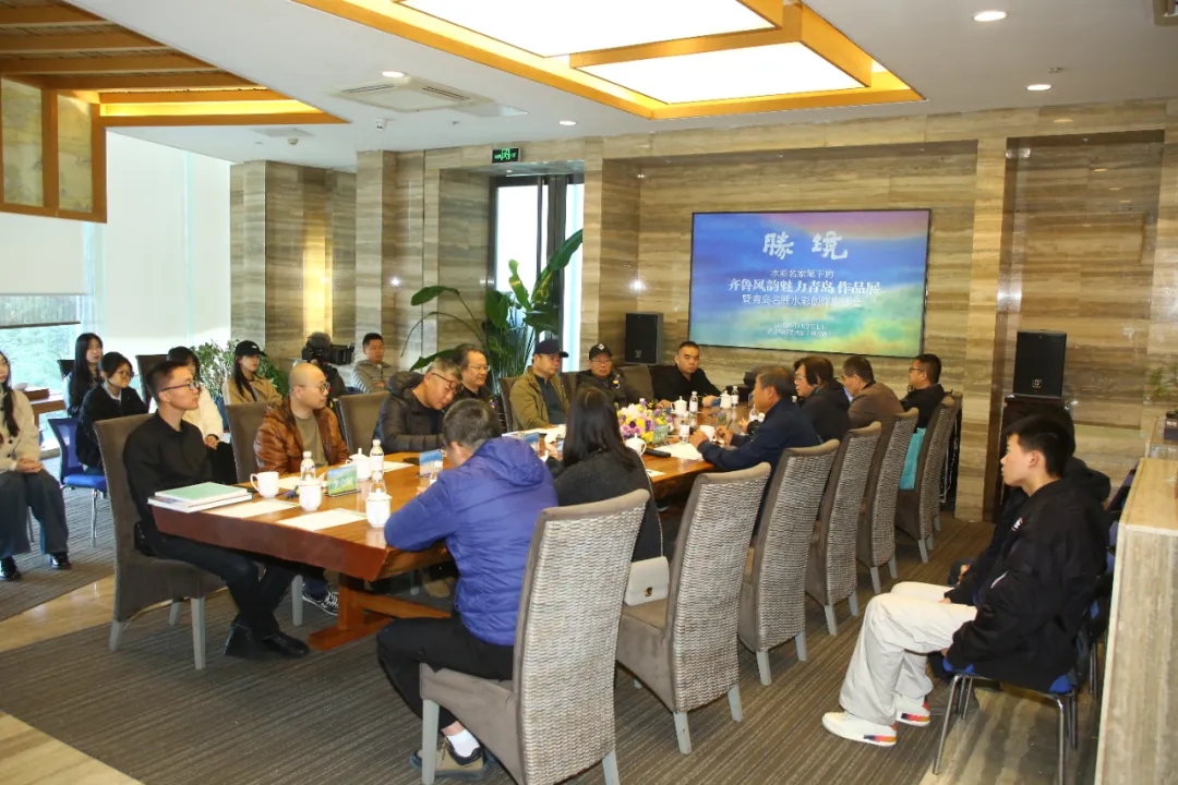 刘咏主持画家创作座谈会,王绍波在发言中指出,青岛水彩画在全国水彩画领域享有盛誉,作为水彩画家应转变创作观念,要立足本土,关注家乡,寄情齐鲁大地与山海家园,这是艺术关注社会、参与时代洪流的体现。这次展览名称中的“胜”字代表美好、壮阔、经典、名胜;“境”字代表境界、意境。合起来,就是要求艺术家用水彩画的语言,去表现齐鲁大地的经典名胜之美及其蕴含的精神境界。画家看惯了身边的景象,反而觉得很难表现,要敢于从“避重就轻”到“迎接挑战”。艺术家的创作在“个人表达”与“公众关注”之间要找到结合点,而此次画展正是这样一个契机,促使艺术家们突破自我,接受了这个主题在先的创作任务。创作过程中,作品反复修改审定,以实现艺术性与主题性的统一。成果也非常显著,展览作品艺术性地表达了山东和青岛的标志性名胜景观,可以用于城市形象宣传,这是艺术家们作品更重要的价值体现,填补了此前系统性、高水准描绘本土风光的主题创作的空白。但这次画展只是“初探”,下一步的目标不仅是“画得像”、“画得美”,更要融入画家的情感,实现艺术的升华,让观众从熟悉的人文自然景象中获得新的视觉冲击和心灵震动。希望画家们要以这次主题创作活动为契机,转变创作思路,将激情与热情投入到创作过程中。将最美的山东、最美的青岛、最美的家乡描绘出来,让齐鲁大地、青岛山海以水彩之艺术魅力走向世界。