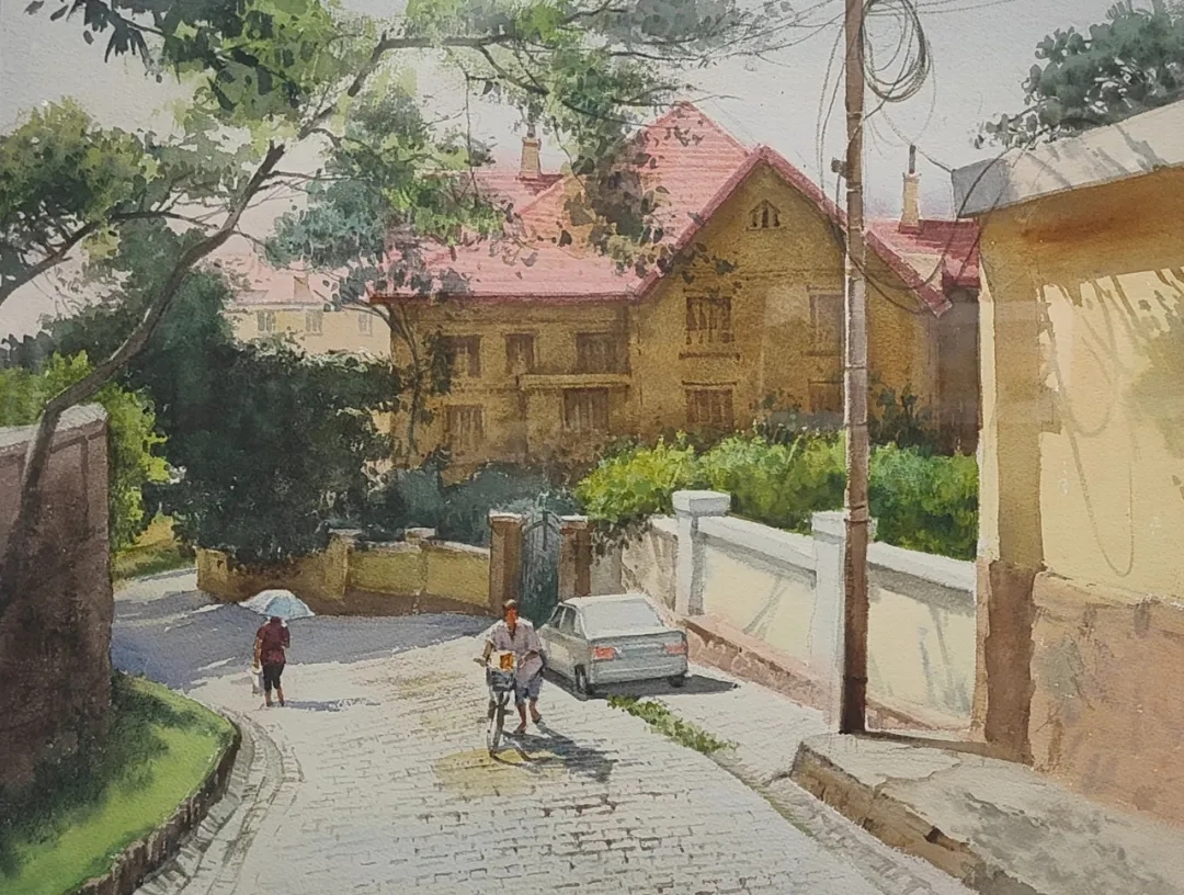 高连保 |《夏风里的老街》| 33.5X49cm | 2025年