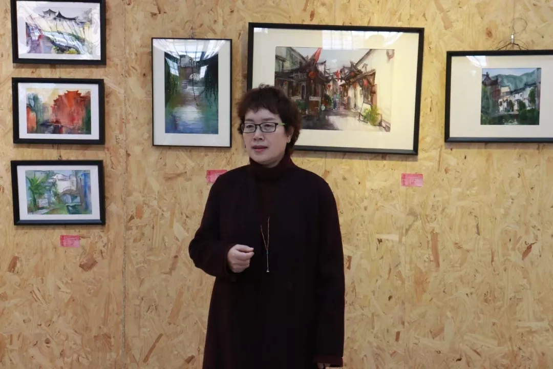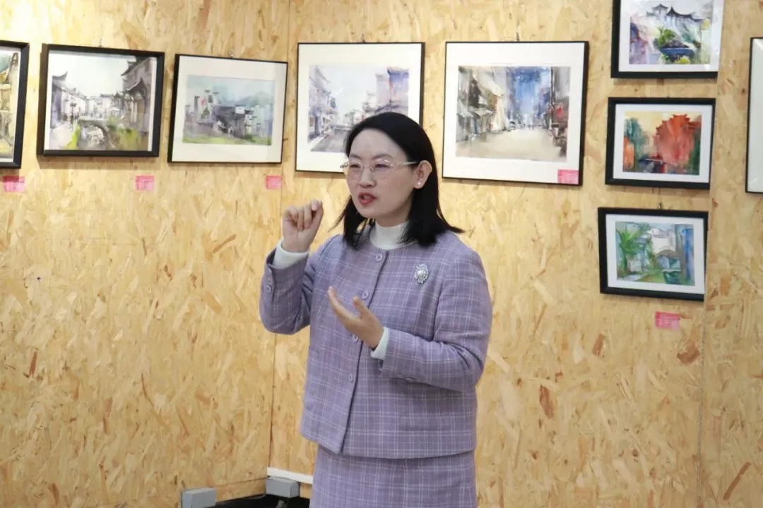 浮山书院负责人卢文丽对同学们的写生作品所传递的美感表示共鸣。她从青岛大学人文素养和校园的美育的角度给出中肯的建议,同时也希望这样好的展览和好的作品能够惠及更多其它专业的同学。