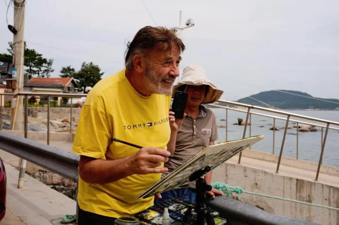 崂山仰口码头、青山渔村以及华东酒庄的自然人文景观为水彩创作提供了得天独厚的条件。在本次写生活动中,艺术家们笔下停泊的木船群、海边的民居,都成为水彩表现的生动题材。