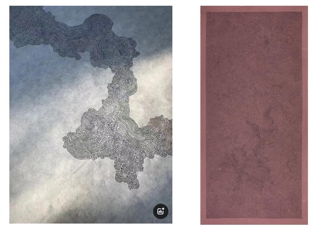 杜婕身上总有种自我觉知的佛性。杜婕始终追求一种极度自由的状态,用她的话说:“艺术的边界不是墙,是等着被推开的门。”她的作品看似是平涂的色彩平面,近看却藏着玄机。她把国画“白描”的线性传统揉进小幅画作中,在色块上勾勒出密密麻麻的细线条。你看到的其实是同一条线,而线始终不断,因此她把每幅作品的创作时长作为作品的题目。这些线有的像蚕丝缠成的网,有的像水流冲过的痕,冷寂的色块突然有了呼吸。从2002年开始至今,23年的时间里,杜婕一直在这根线里缠缠绕绕,探寻着自己,也探寻着人生的意义——她希望用作品激发自己,也激发观者身上的佛性,以及自我觉知的探讨。