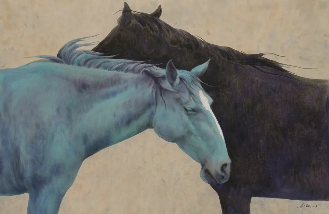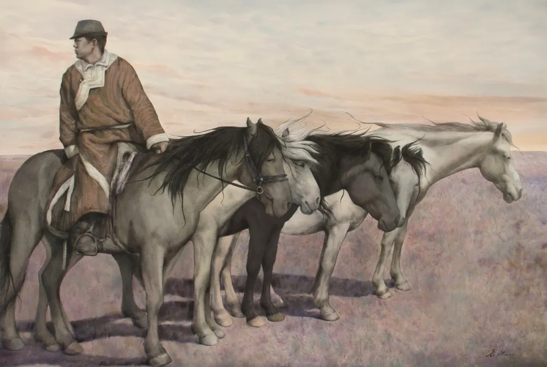 长海的艺术创作灵感就来源于他生活成长、无限依恋的故乡——内蒙古草原,他的作品一直围绕蒙古马和北疆大地丰富多彩的风物故事,且不局限于创作形式的多元探索,通过情感和思绪的碰撞交流,不断拓展着更加多元广阔的艺术视野与美学观念。