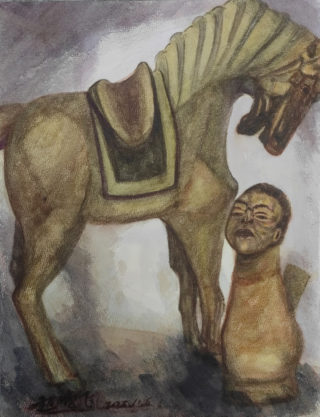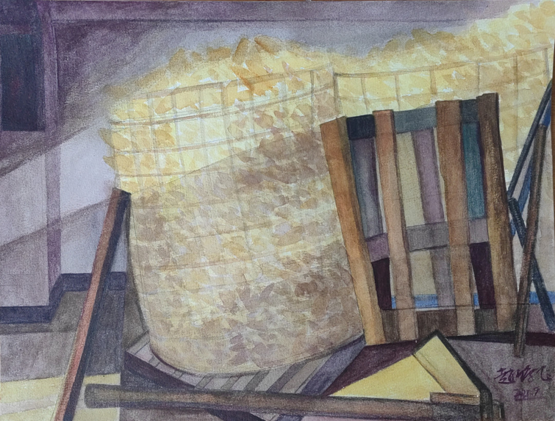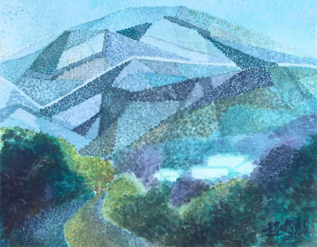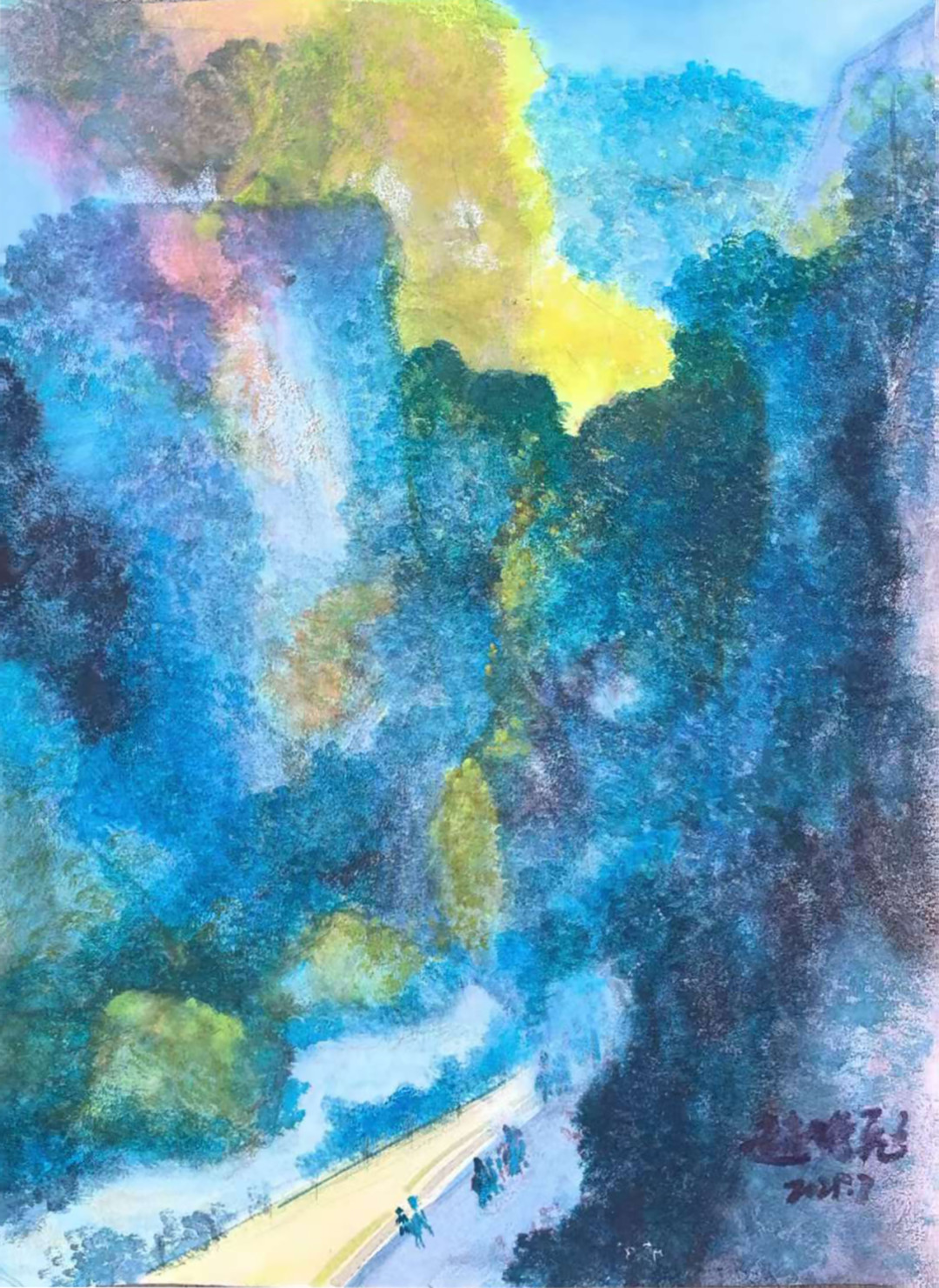 他注重对画面水与色的掌控。创作中,他不刻意追求轮廓的极致清晰,而是借助水分的晕染,让色彩自然交融、渐变,形成柔和的过渡效果。淡彩铺陈时,画面如薄雾般轻盈,尽显空灵意境;重彩点染处,又不失色彩的饱和与张力,却无厚重压抑之感。水色的偶然晕散与刻意把控相互平衡,既保留了水彩的 “偶然性” 魅力,又通过精准的笔触引导,让画面始终围绕主题展开,避免了水色失控的杂乱,尽显创作功底。