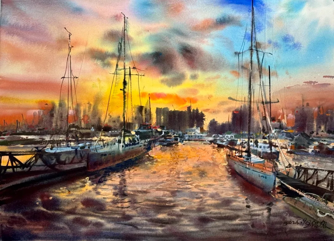 王绍波 |《奥帆唱晚》| 55X75cm | 2025年