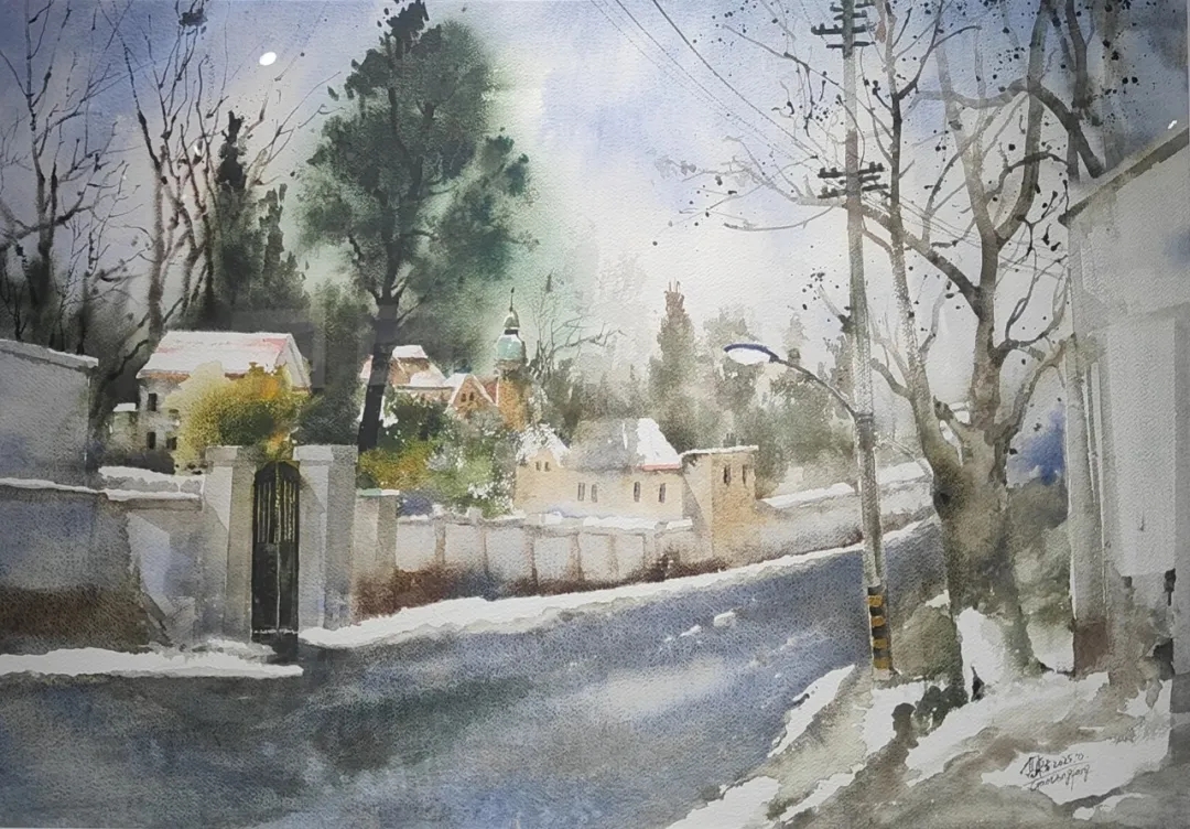 高连保 |《夏风里的老街》| 33.5X49cm | 2025年