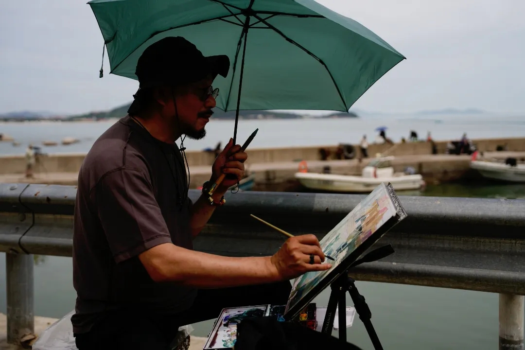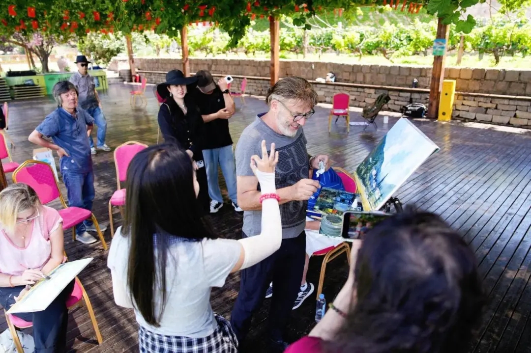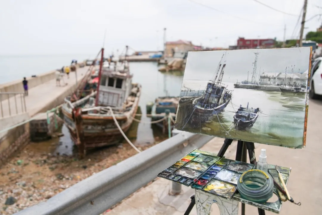 崂山仰口码头、青山渔村以及华东酒庄的自然人文景观为水彩创作提供了得天独厚的条件。在本次写生活动中,艺术家们笔下停泊的木船群、海边的民居,都成为水彩表现的生动题材。
