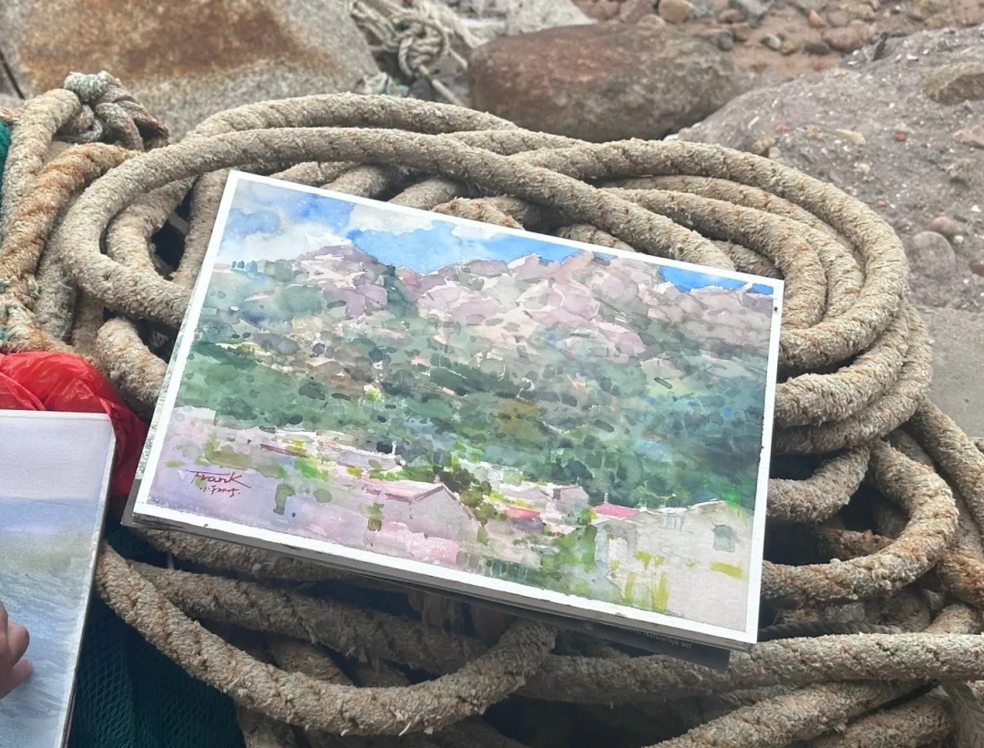 此次采风写生活动,不仅为艺术家们提供了丰富的创作源泉,也让崂山“海上名山第一”的立体画卷通过水彩这一独特艺术形式得以精彩呈现。雄浑的奇峰石刻、古老道观,灵动的碧海金沙、渔村风情,水彩艺术以其通透、轻灵、写意的特质,完美诠释了崂山自然景观的多样性与人文历史的厚重感。