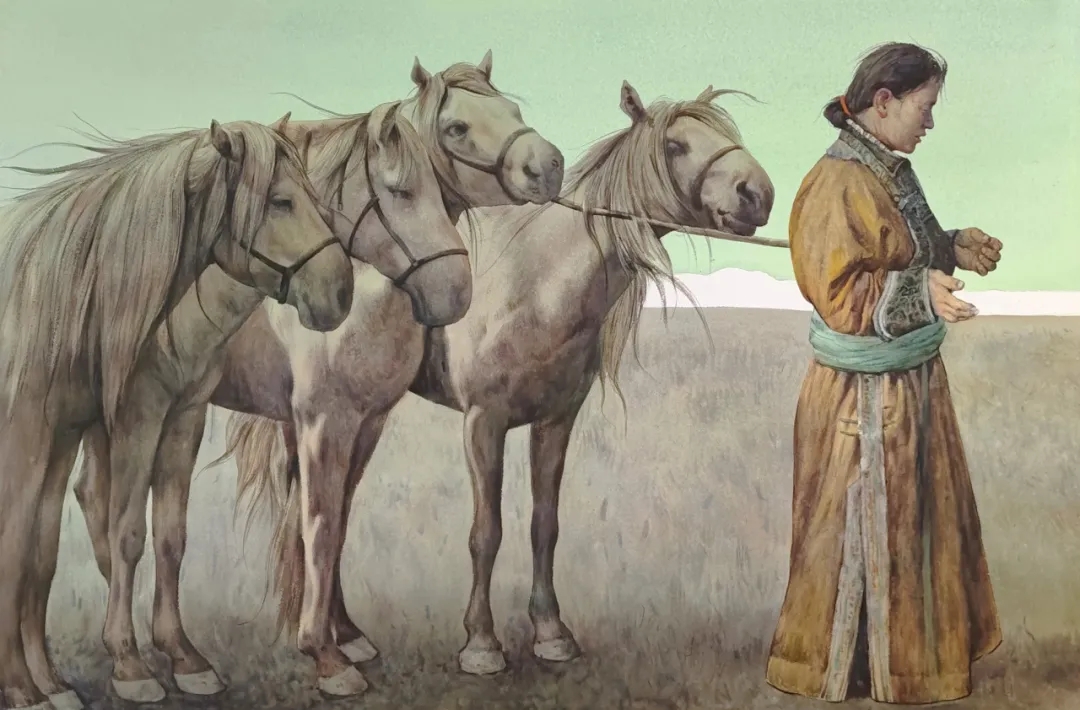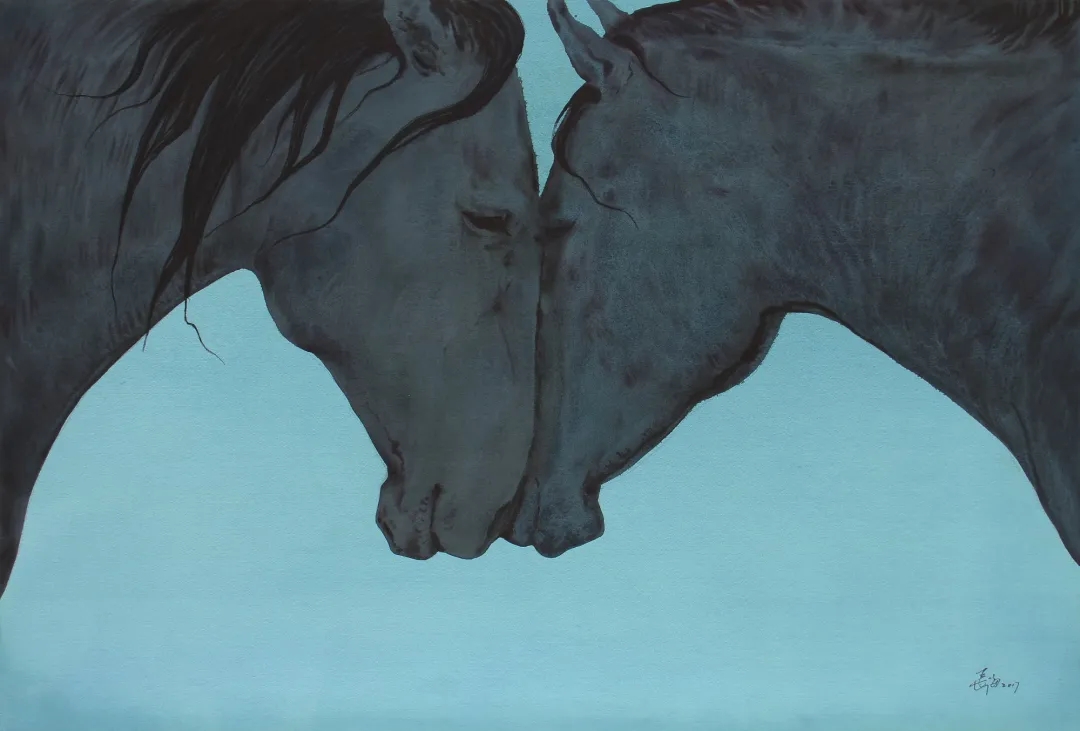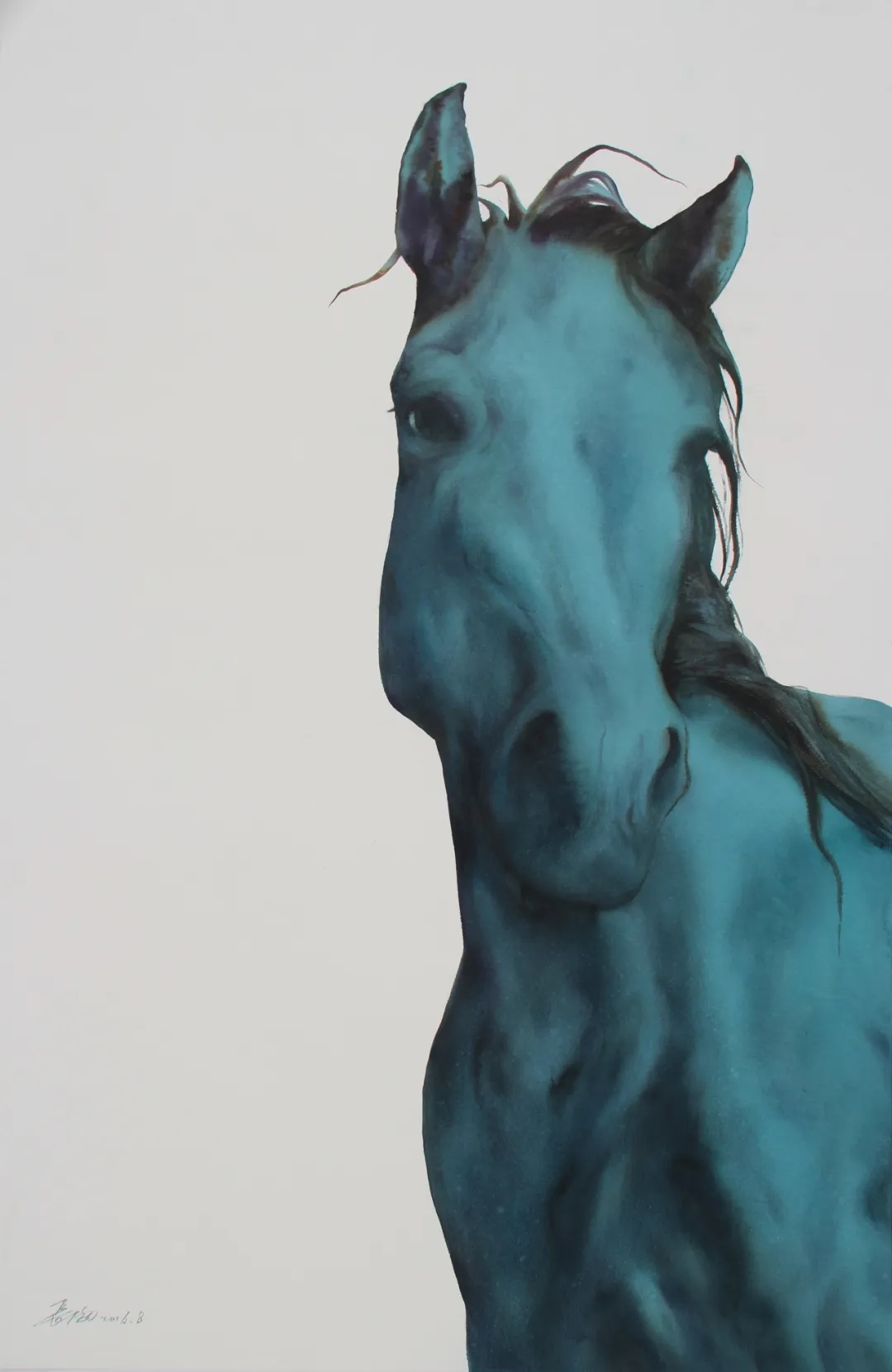 长海的水彩艺术对马的表述极具个性和心性自由的特征,这种特征与当代中国水彩艺术的实践既保持着生存上的距离,又有着精神上的高度默契,精神自由和现实功利的角逐成为一个共同的主题。语言模式上不断翻新与演进,体现出对外部物欲世界的挣扎和自我内心突围,而他用个性语汇的日臻成熟完成了自我救赎和心灵净化。对绘画语言的新尝试和对已有规范的新突破,几乎成了长海亟待挣脱的桎梏,而身居内蒙古草原的他算是特立独行的“另类”,始终沉浸于那浩瀚的地平线之间,持守着属于自己的那份清寂。