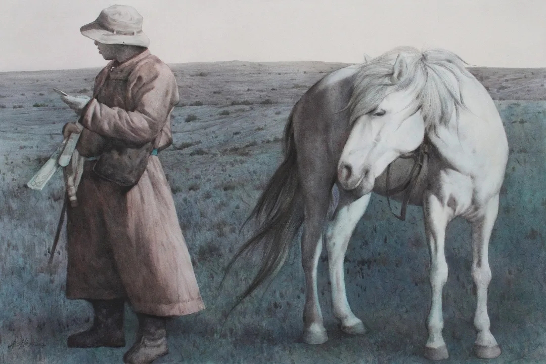 长海的艺术创作灵感就来源于他生活成长、无限依恋的故乡——内蒙古草原,他的作品一直围绕蒙古马和北疆大地丰富多彩的风物故事,且不局限于创作形式的多元探索,通过情感和思绪的碰撞交流,不断拓展着更加多元广阔的艺术视野与美学观念。